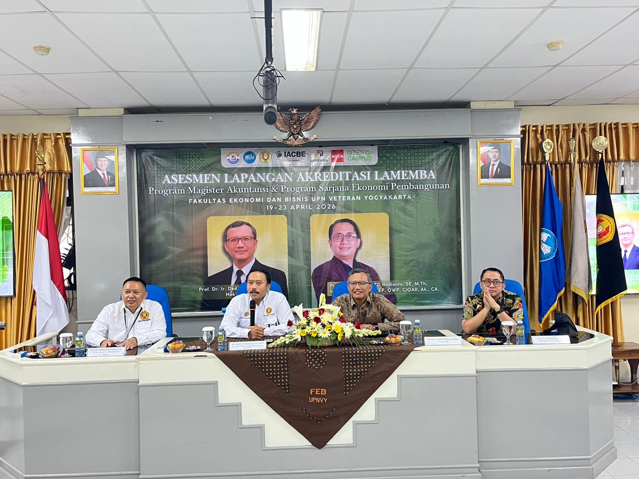 Yogyakarta, 20 April 2026 — Program Studi Ekonomi Pembangunan, Fakultas Ekonomi dan Bisnis Universitas Pembangunan Nasional “Veteran” Yogyakarta menjalani hari pertama Asesmen Lapangan akreditasi LAMEMBA pada Senin, 20 April 2026. Kegiatan asesmen dilaksanakan di Ruang Seminar FEB dan Ruang SPD-2 sebagai bagian dari rangkaian Asesmen Lapangan Program Studi Sarjana Ekonomi Pembangunan UPN “Veteran” Yogyakarta yang dijadwalkan berlangsung pada 19–23 April 2026. Tim asesor yang ditugaskan LAMEMBA dalam asesmen ini adalah Prof. Dr. Ir. Dedi Budiman Hakim, MAgrEcon dari Institut Pertanian Bogor dan Prof. Dr. Wirawan Endro Dwi Radianto, M.ScA., Ak., CA dari Universitas Ciputra Surabaya.